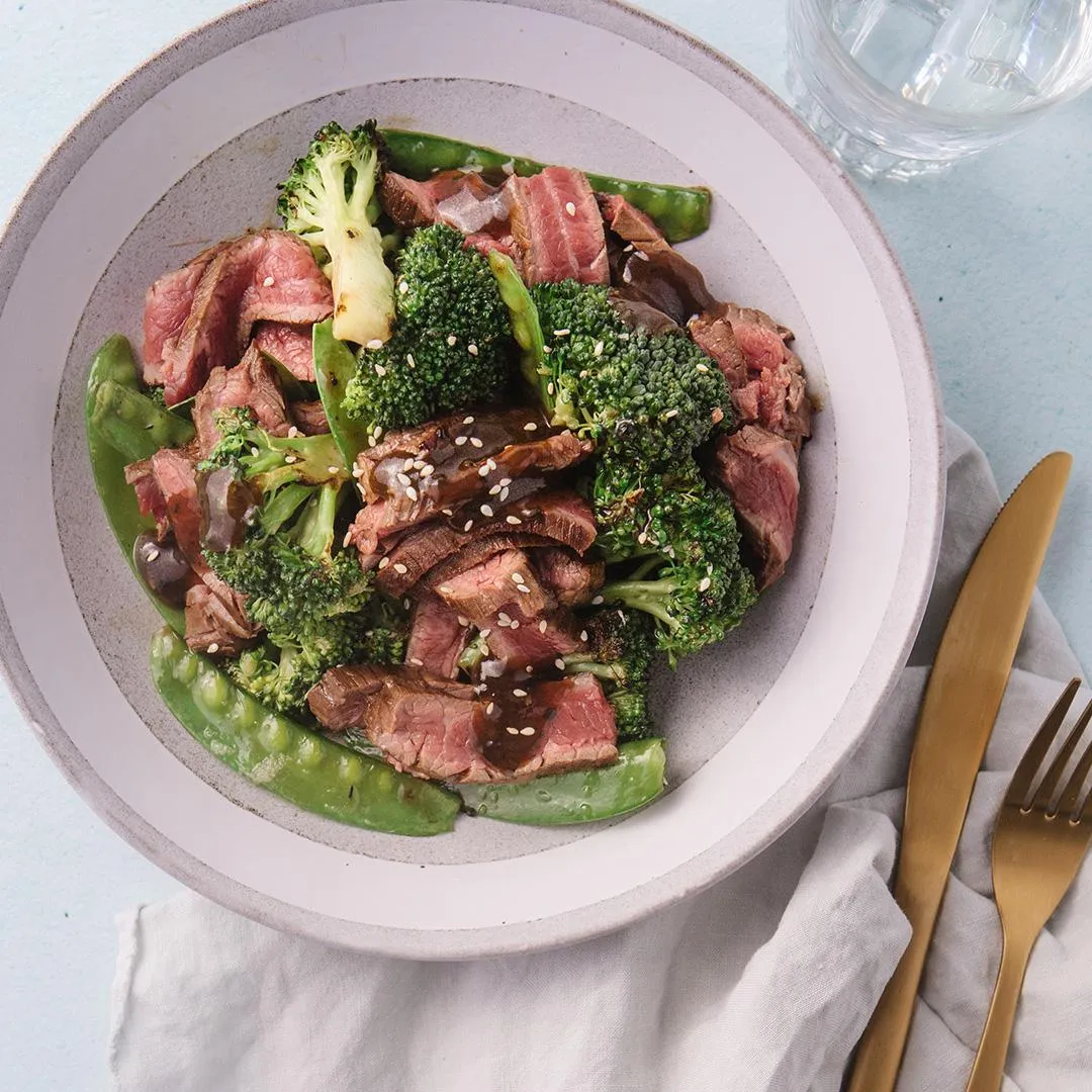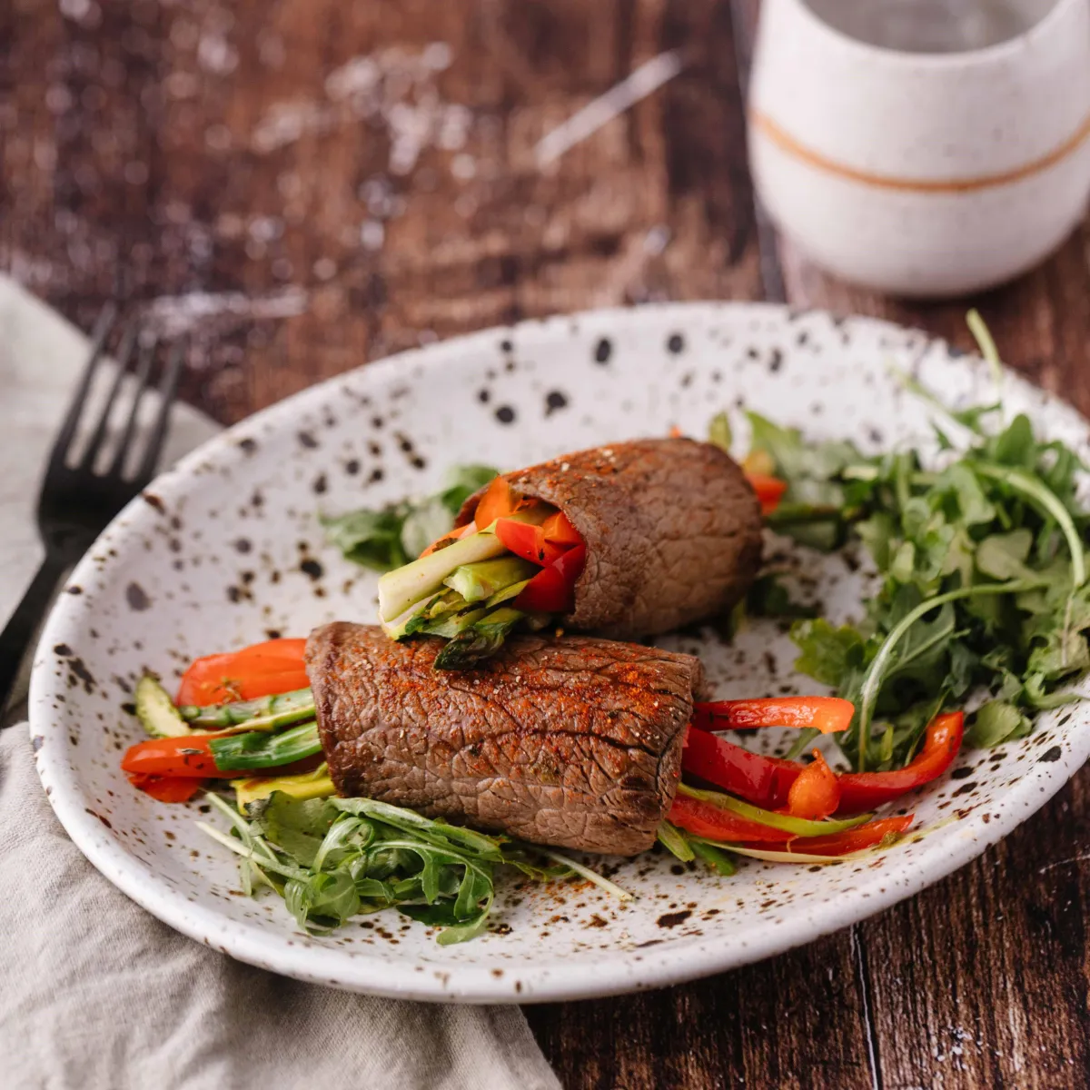 Beef, Steak, Asparagus, Bell Pepper, Onion, Zucchini, Arugula